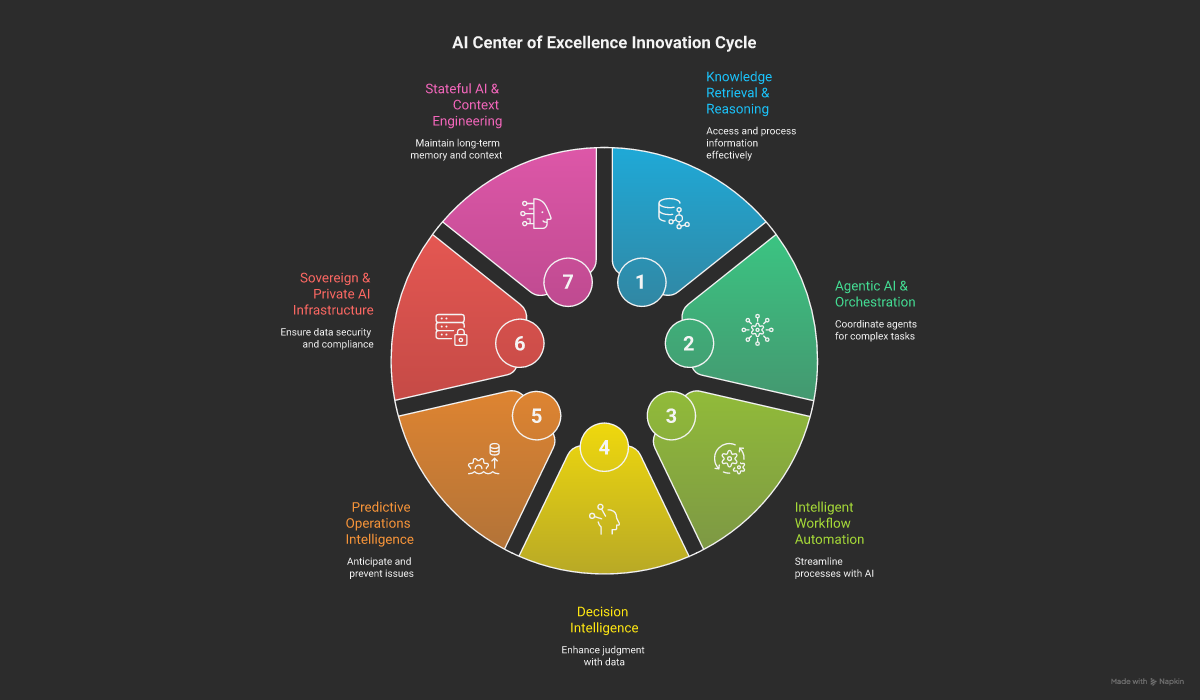 Those three get most of my attention right now. The remaining four are decision intelligence, predictive operations, sovereign and private AI infrastructure (big for clients with data sovereignty requirements), and stateful AI / context engineering, which is the problem of giving agents memory and continuity instead of starting from zero every conversation.